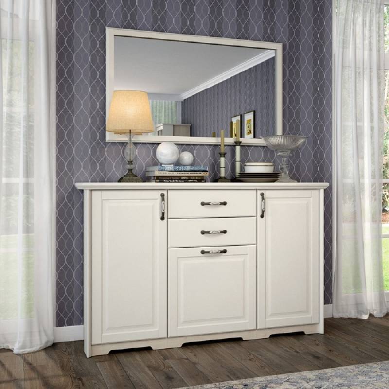 Comoda cu 3 usi si 2 sertare EVERGREEN 159x102x49cm ivory/ pin polar
