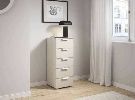 Comoda cu 4 sertare ADITIO 80x81x42cm alb alpin/ sticla champagne