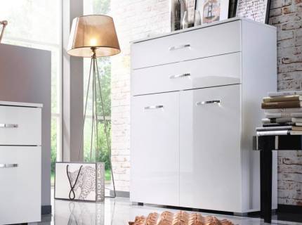 Comoda poate avea sertare cu sistem de culisare pe sine sau usi cu balamale