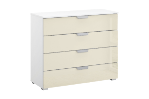 Comoda cu 4 sertare ADITIO 93x81x42cm alb alpin/ sticla champagne