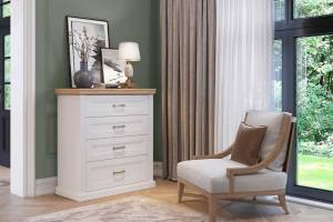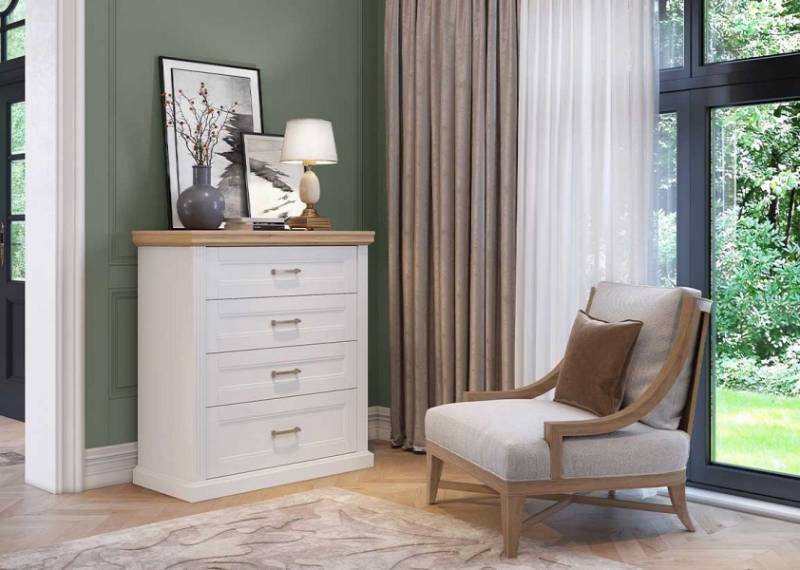 Comoda cu 4 sertare TARA WHITE 101x112x48cm alb mat/ nuc Pacific