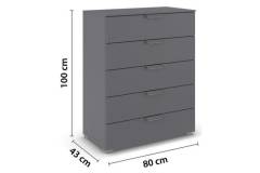 Comoda cu 5 sertare ADITIO 80x100x42cm gri metalic, manere crom