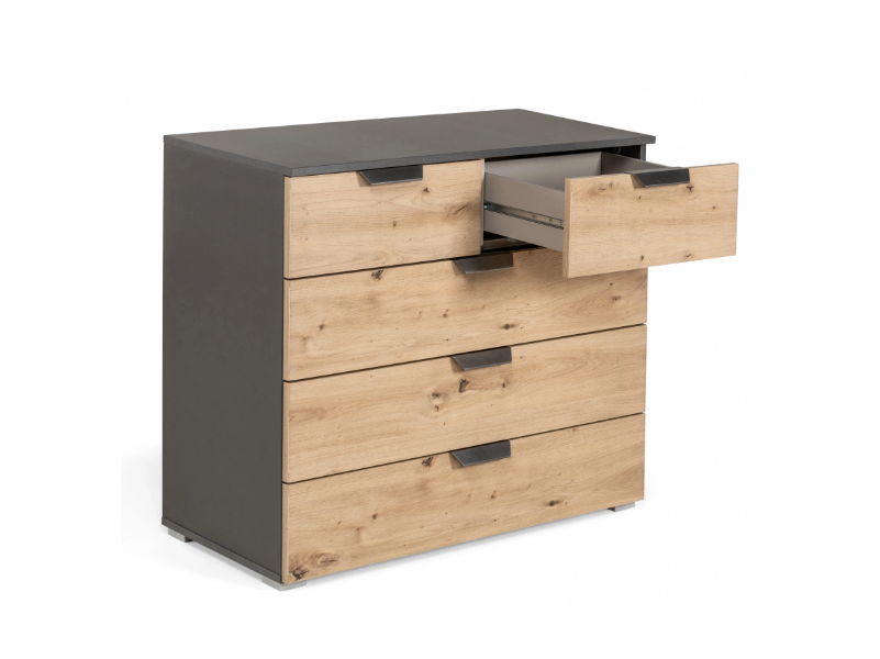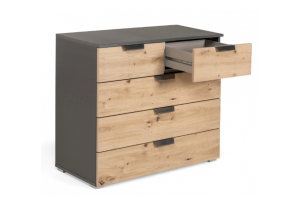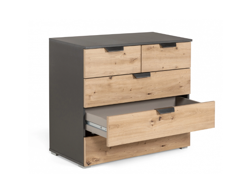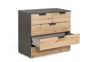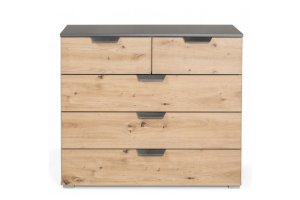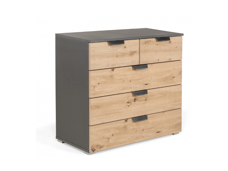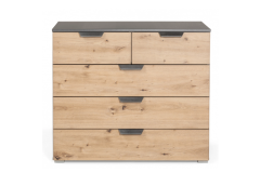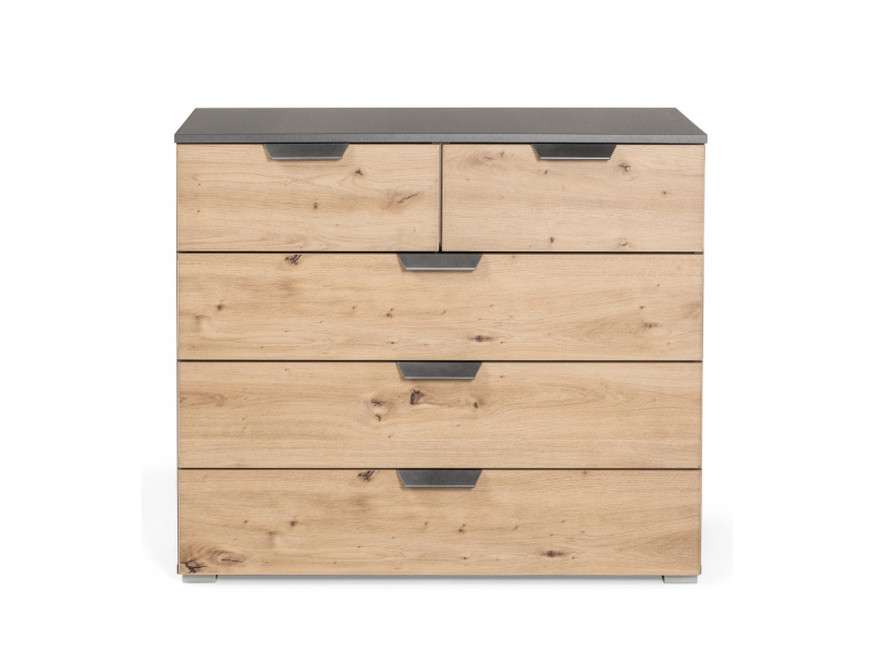 Comoda cu 5 sertare ADITIO 80x81x42cm gri metalic/ stejar aritsan