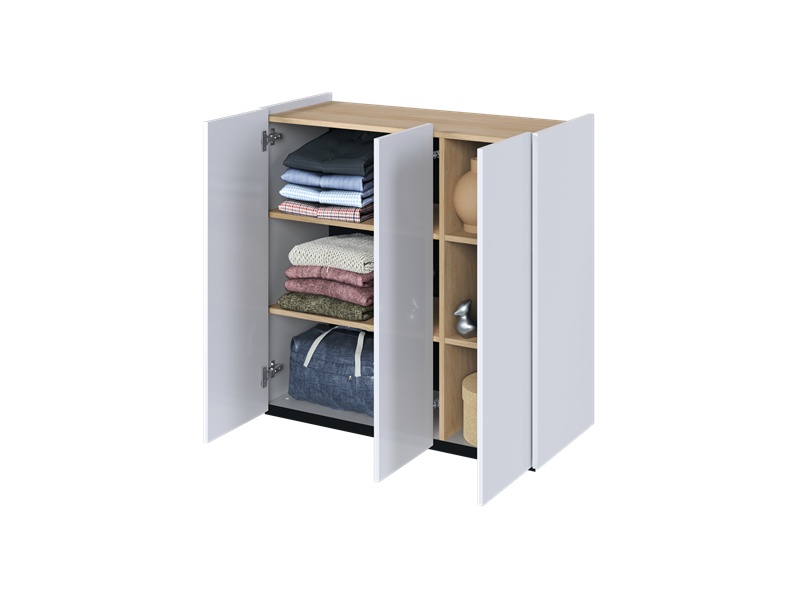 - standard comoda vine cu cate 2 polite per compartiment, in total 4 polite