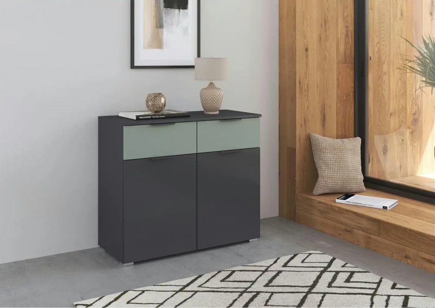 - Sertare gri metalic - Sage / carcasa gri metalic - manere gri metalic