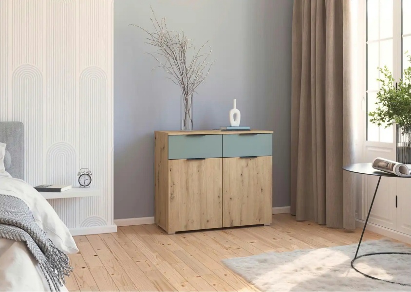 - Sertare stejar Artisan - Sage / carcasa stejar Artisan - manere gri metalic