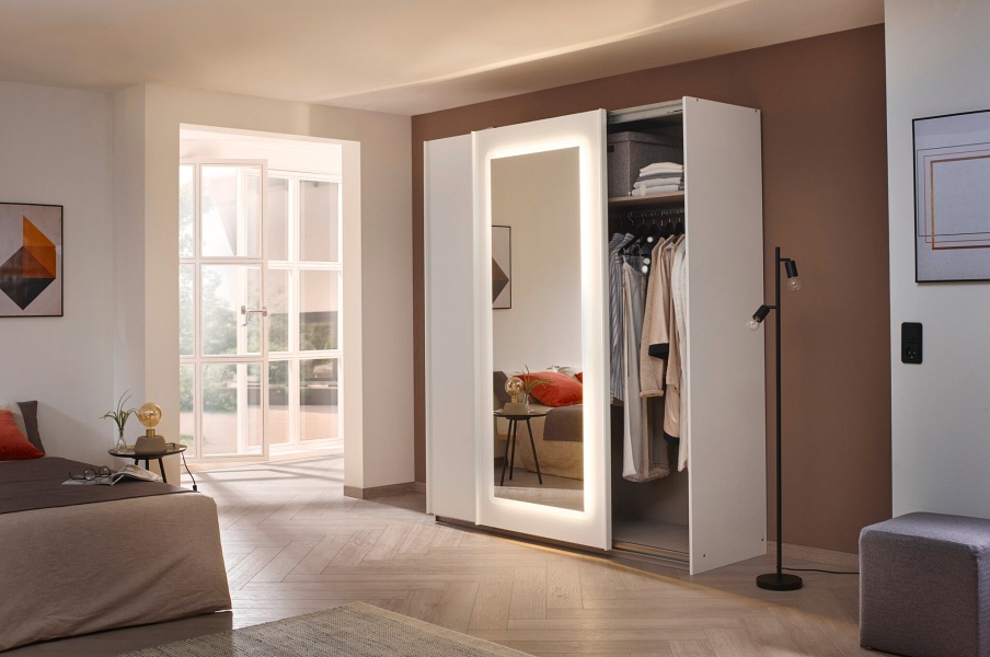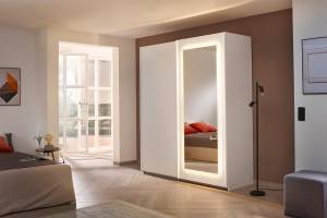 Dulap 181x210x62cm alb alpin/ oglinda cu led ABRAXXAS