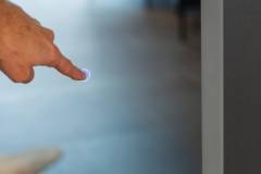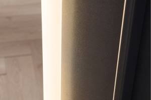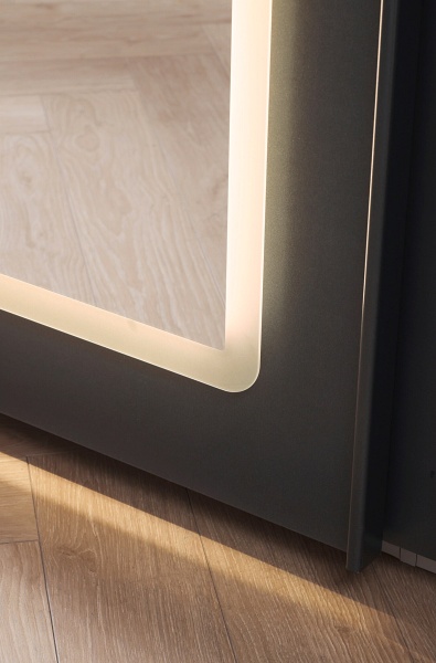 Dulapul are un buton cu touchscreen pentru activarea-dezactivarea luminii LED din jurul oglinzii.