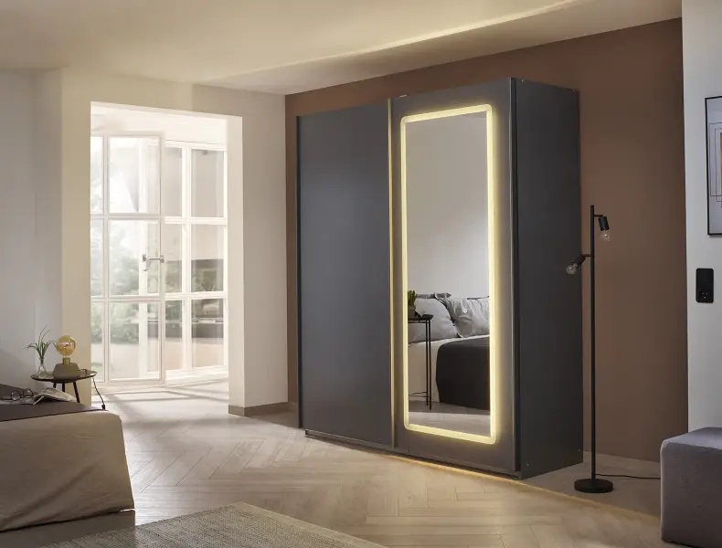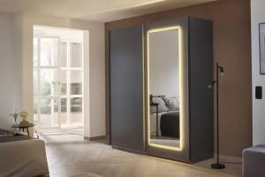 Dulap 181x210x62cm gri metalic/ oglinda cu led ABRAXXAS