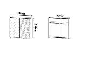 Dulap alb alpin /sticla silk grey 181x210x62cm RASTATT