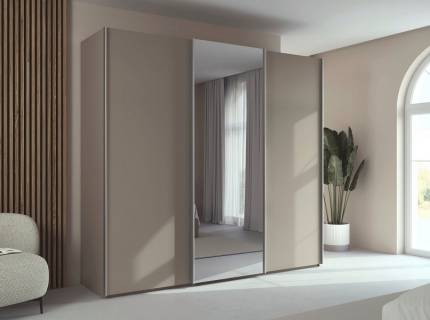 Dulap cu usi glisante BOSTON EXTRA 271x210x62cm alb alpin/ silk grey - oglinda, maner alb alpin