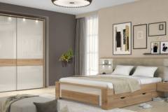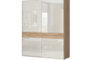 Dulap cu usi glisante GALA 182x224x61cm bej lucios/ nuc Pacific, maner crom