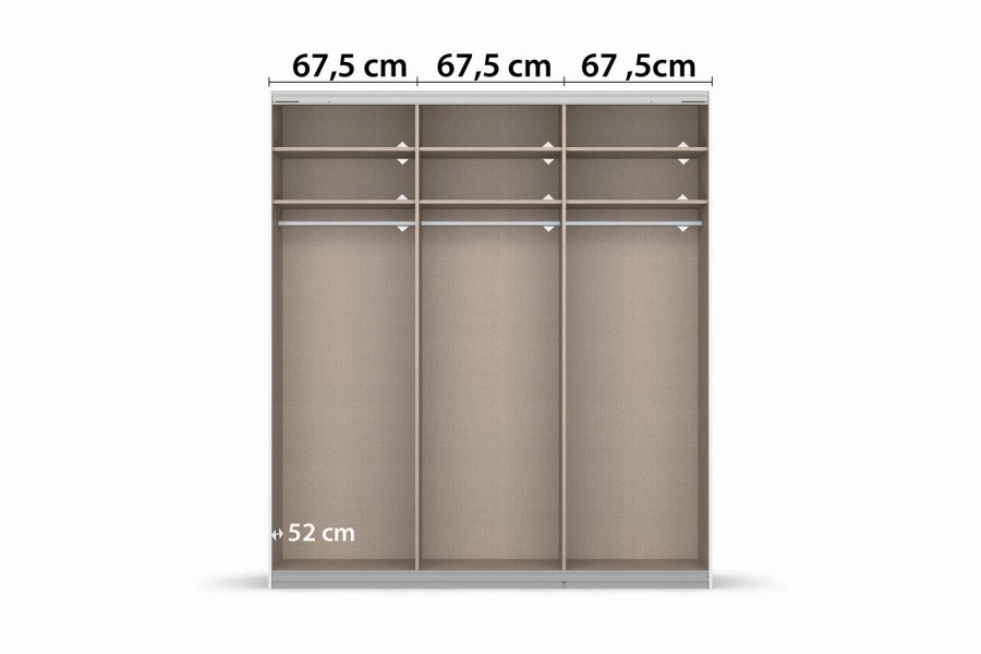Standard la dulap primiti cate 2 polite si 1 bara pentru umeras pentru fiecare compartiment in parte, in total 6 polite + 3 bare.