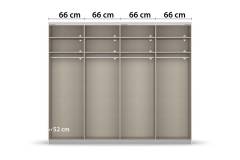 - Dulapul are inclus 2 polite si 1 bara pentru umeras pentru fiecare compartiment, in total 8 polite 66x48cm si 4 bare pentru umerase.