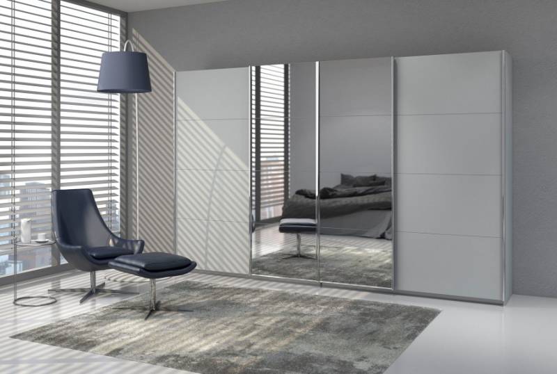 Dulap cu usi glisante SYNCRONO 316x211x62cm silk grey/ oglinda configurabil