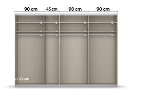 - Pentru compartimentele de 90cm dulapul are inclus 2 polite si 1 bara pentru umeras, in total 6 polite 88x48cm si 3 bare pentru umerase.