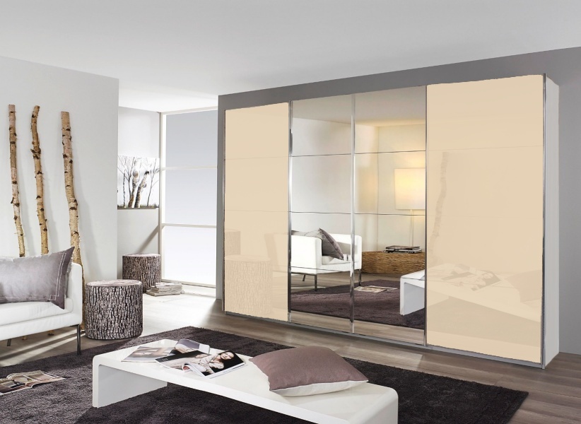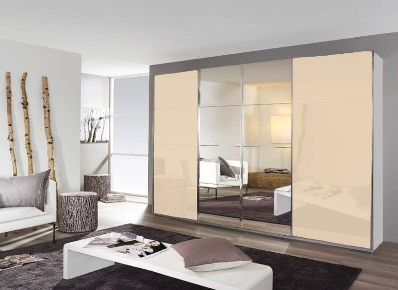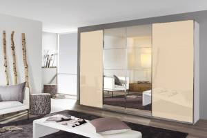 Dulap cu usi glisante SYNCRONO 361x229x62cm alb alpin/ sticla champagne - oglinda configurabil
