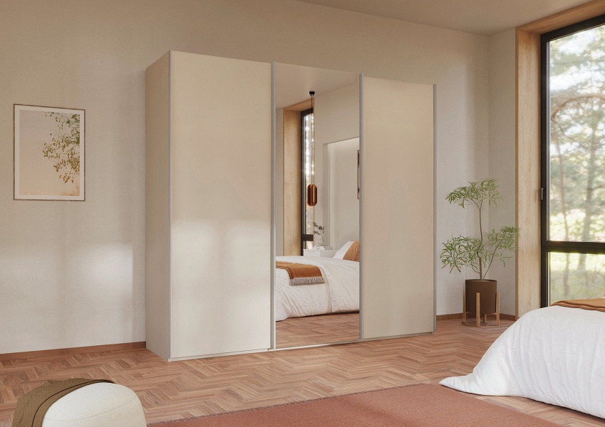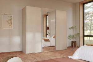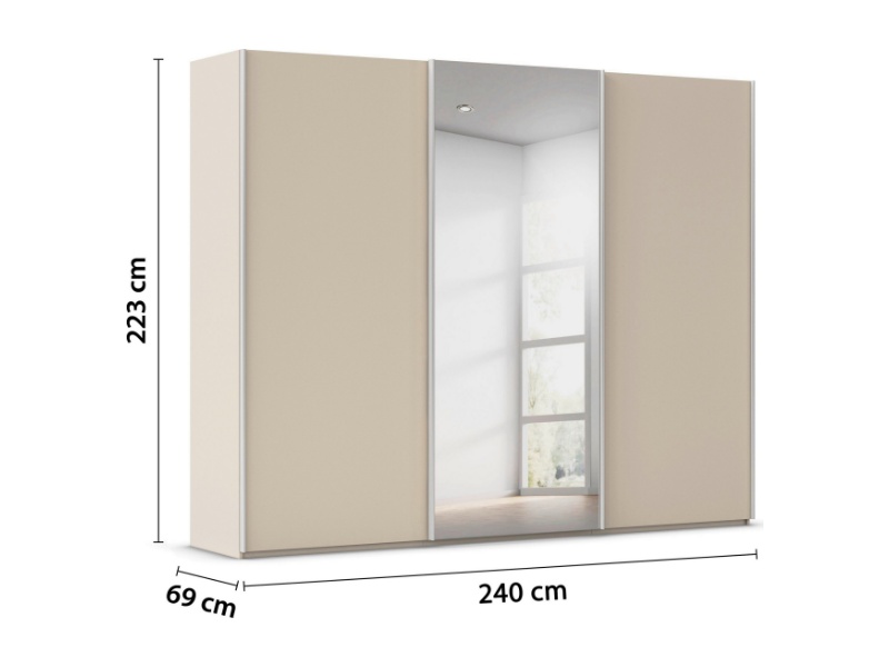 Dulap cu usi glisante TARO 242x223x69cm champagne/ oglinda, maner aluminiu