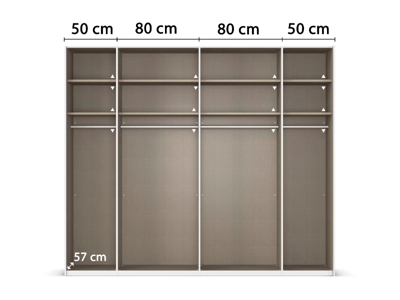 Dulapul poate fi completat cu accesorii inteligente ( sertare, polite, bare pt. umerase, inchidere soft...) care se potrivesc exact nevoilor fiecaruia.