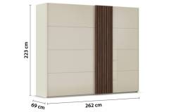 Dulap cu usi glisante TEGIO 262x223x69cm champagne mat/ sticla champagne - Walnut