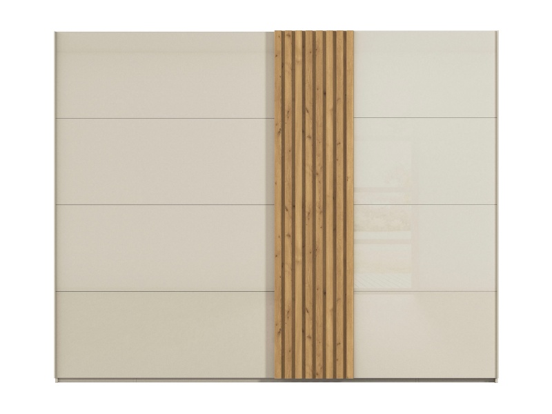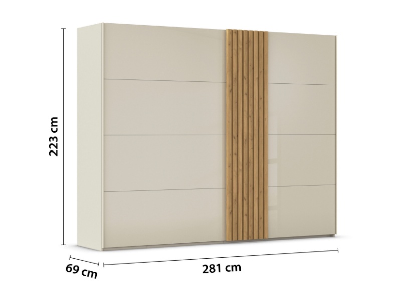 Dulap cu usi glisante TEGIO 281x223x69cm champagne mat/ sticla champagne - stejar Wild