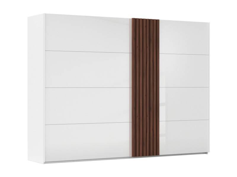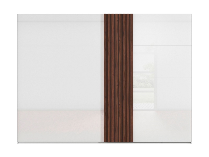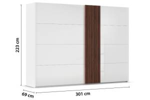 Dulap cu usi glisante TEGIO 301x223x69cm alb alpin/ sticla alba - Walnut