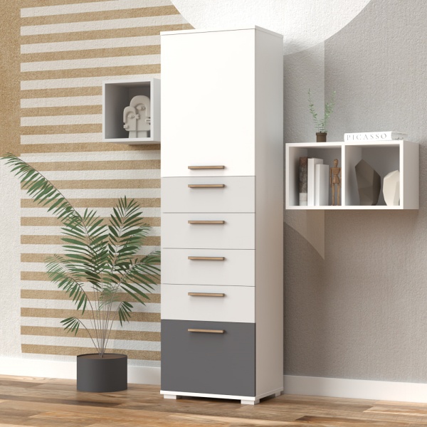 Comoda inalta cu 2 usi si 4 sertare F7 ALL ROOM CONCEPT 56x199x40cm alb mat - configurabil