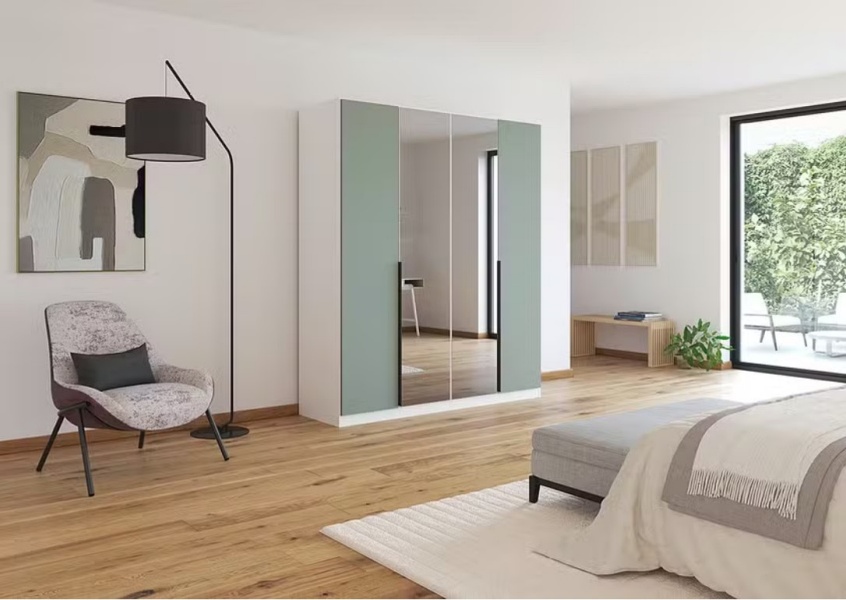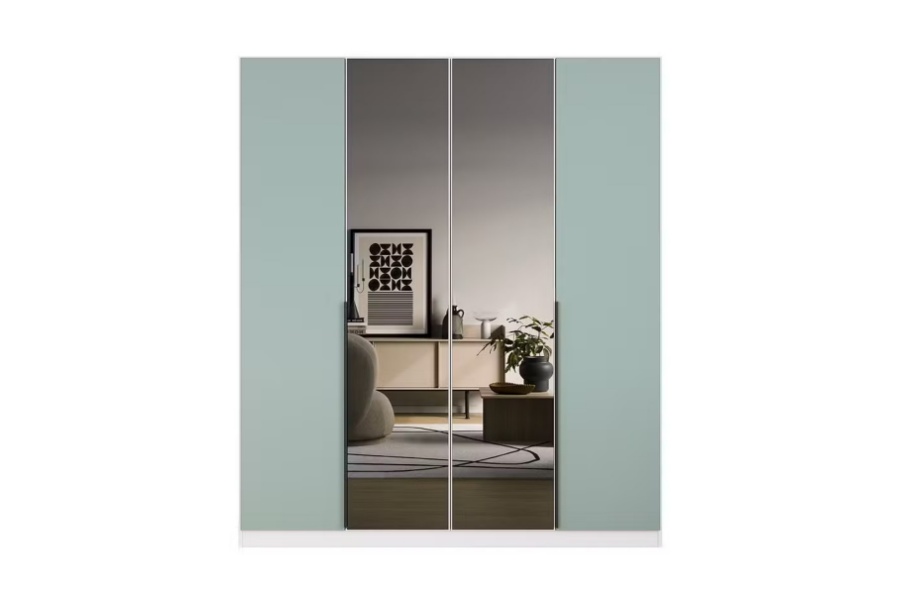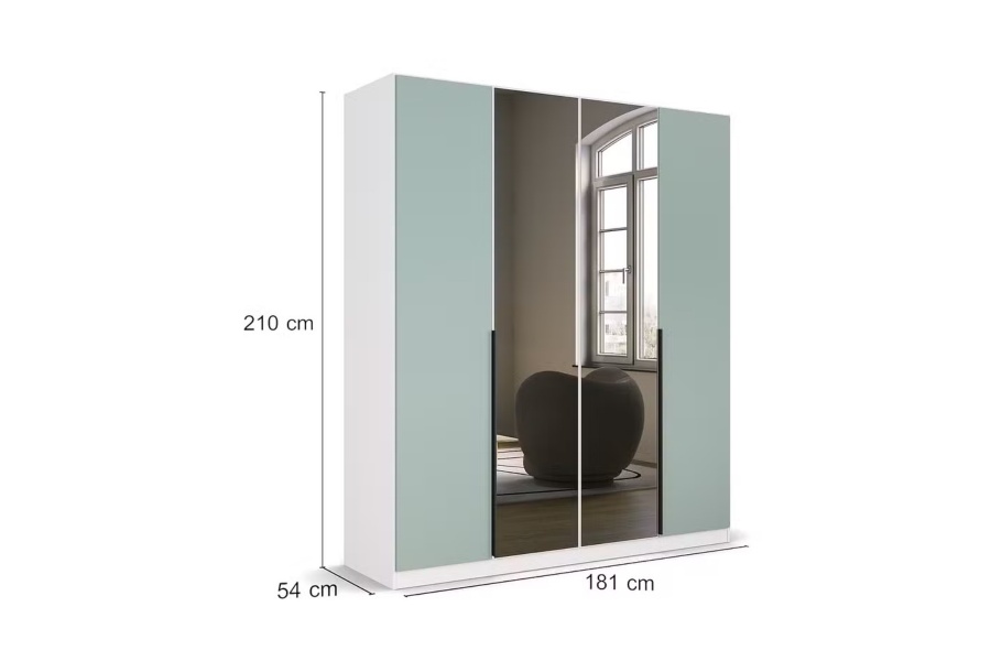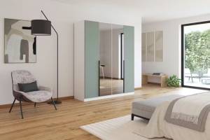 Dulap alb alpin + Sage/ oglinda Grey 181x210x54cm SKYLA