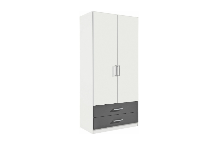 Dulap cu 2 usi cu balamale si 2 sertare ALBERO EXTRA 91x197x54cm alb alpin/ gri metalic, manere aluminiu
