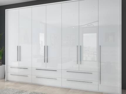 Dulap cu 2 usi cu balamale si 2 sertare PIANO BEIGE 92x224x56cm bej lucios, manere crom