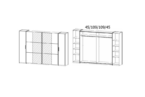 Dulap cu 2 usi cu balamale si 2 usi glisante KRONACH II 312x210x59cm gri metalic/ oglinda