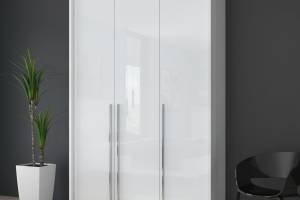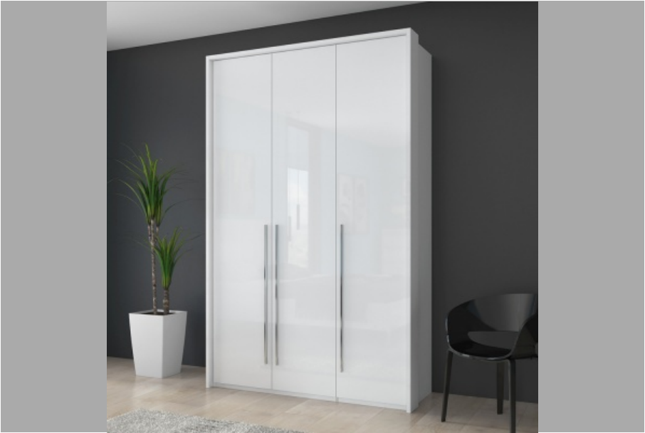 Dulap cu 3 usi cu balamale PIANO WHITE 137x224x56cm alb lucios, maner crom