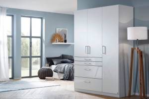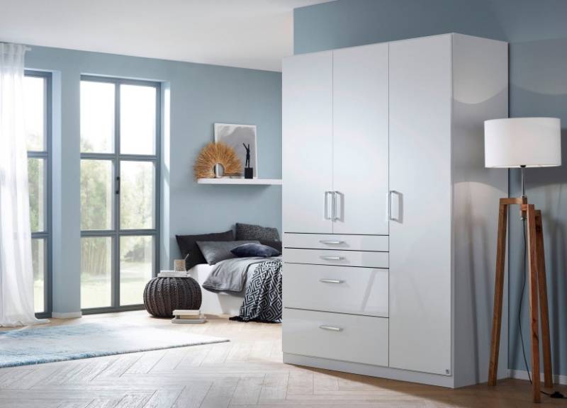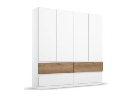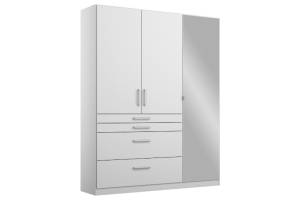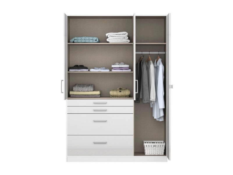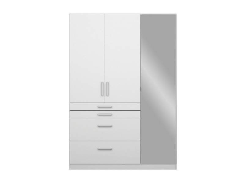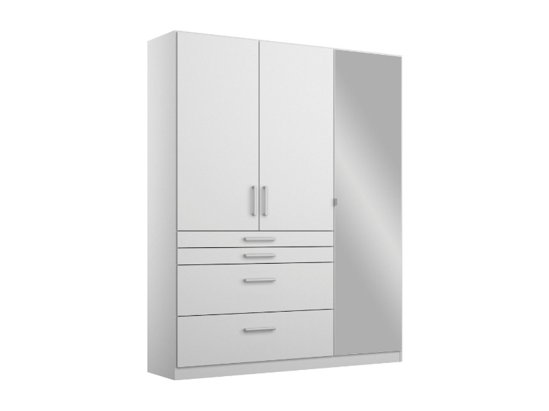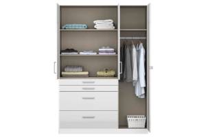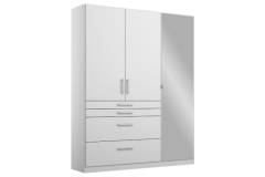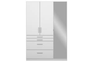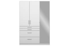 Dulap cu 3 usi cu balamale si 4 sertare HOMBURG 136x197x54cm alb alpin/ alb lucios, manere crom