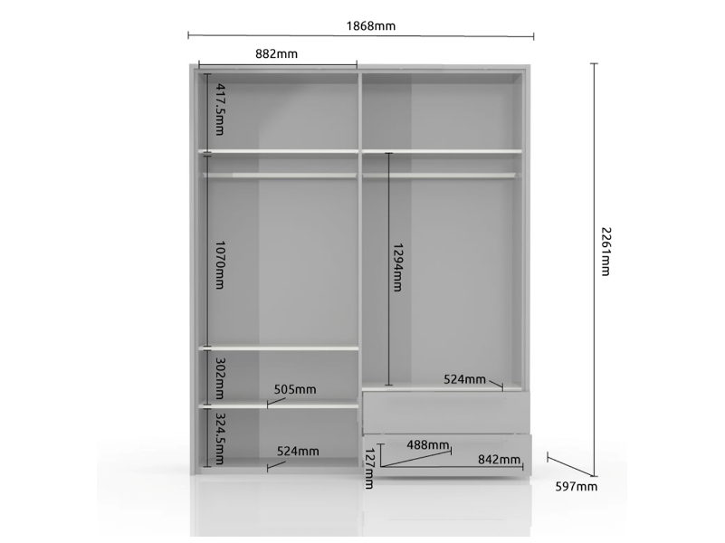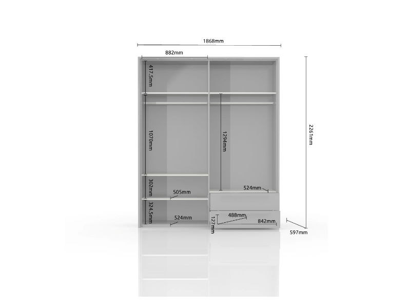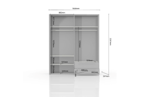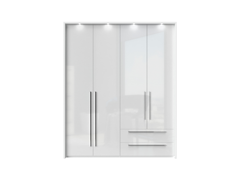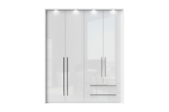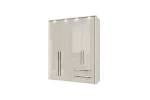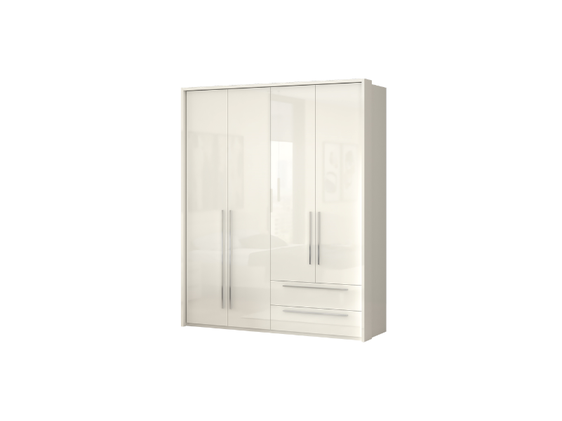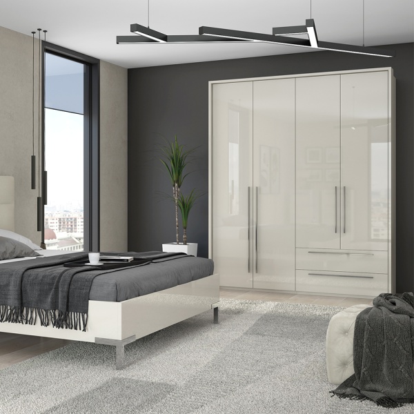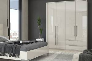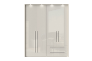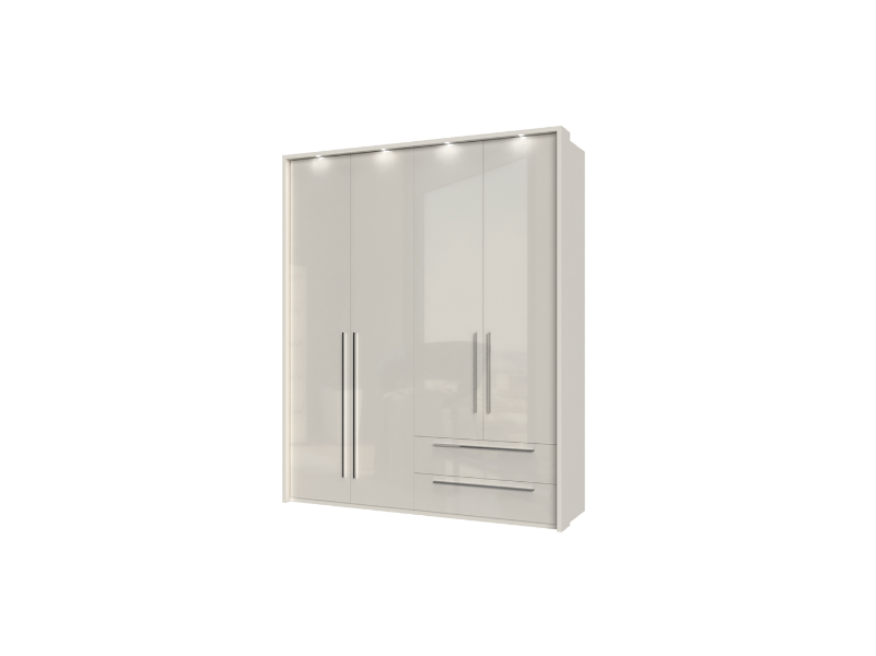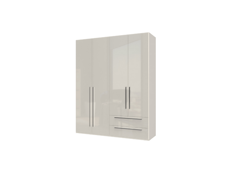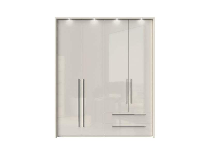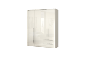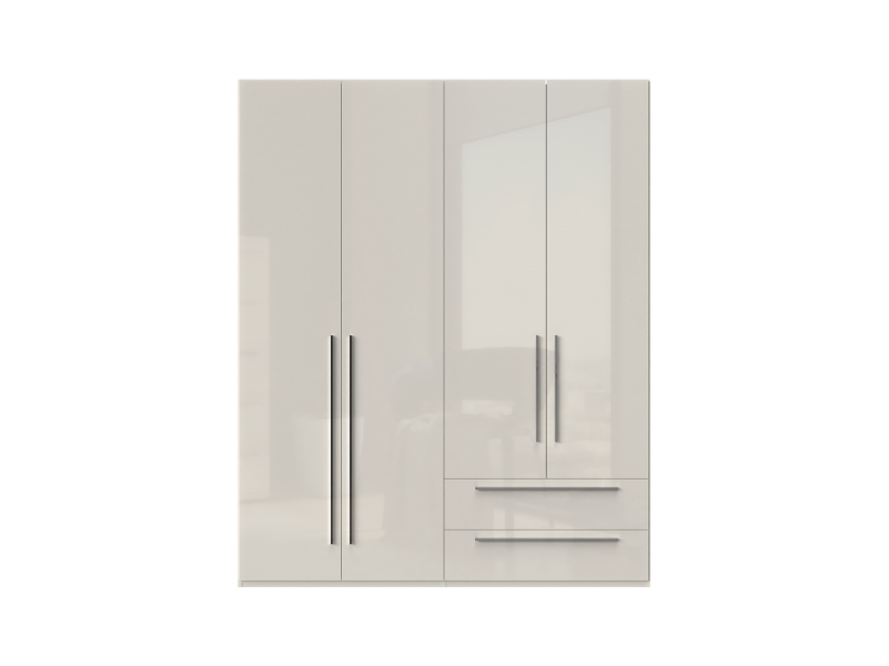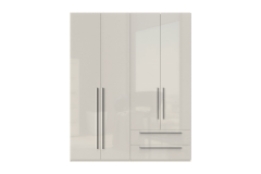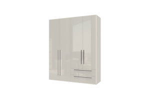 Dulap cu 4 usi cu balamale si 2 sertare PIANO BEIGE 182x224x56cm bej lucios, manere crom