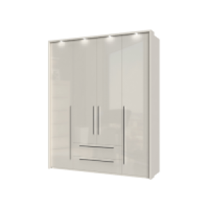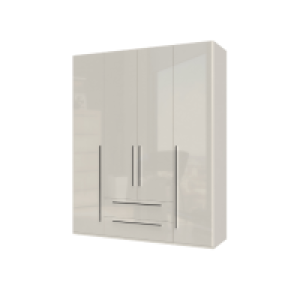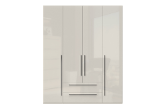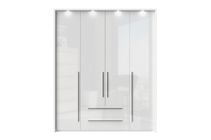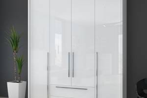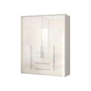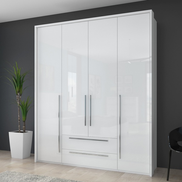 Dulap cu 4 usi cu balamale si 2 sertare PIANO WHITE 182x224x56cm alb lucios, maner crom