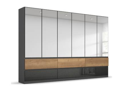 Dulap cu 6 usi cu usi balamale OPERA 272x224x56cm casmir/ oglinda, manere maro