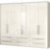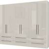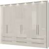 Dulap cu 4 usi cu balamale si 4 sertare HOMBURG 181x197x54cm gri metalic/ gri lucios - oglinda, manere crom