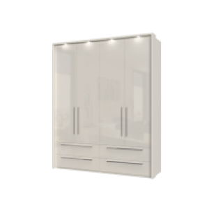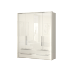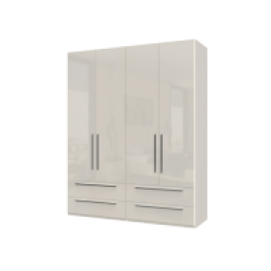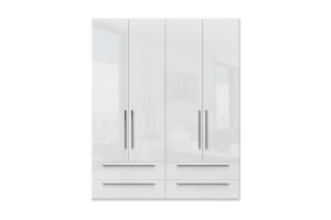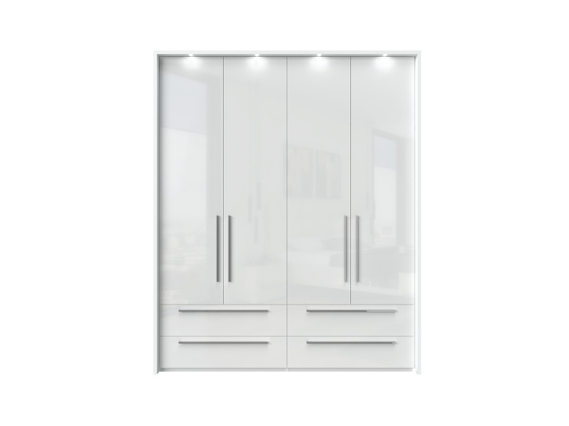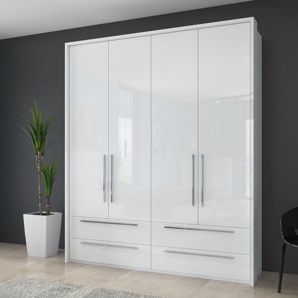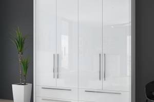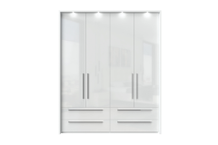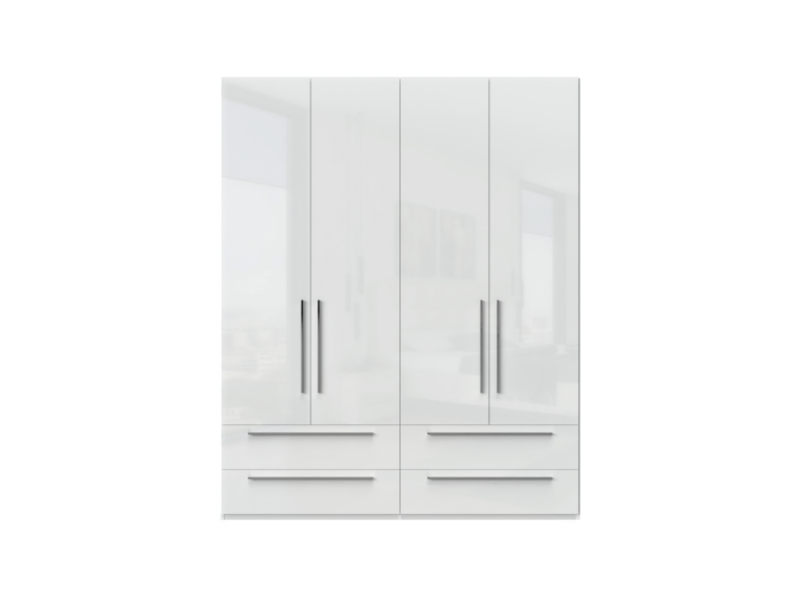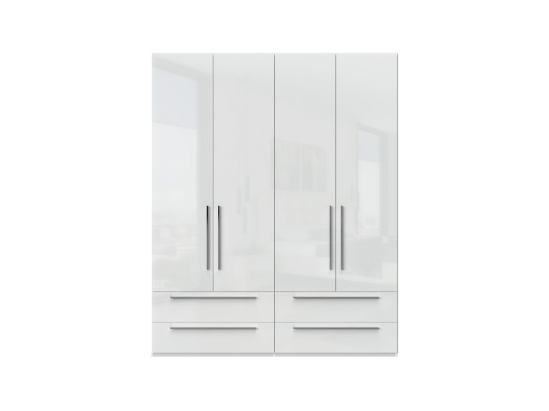 Dulap cu 4 usi cu balamale si 4 sertare PIANO WHITE 182x224x56cm alb lucios, maner crom