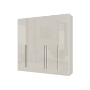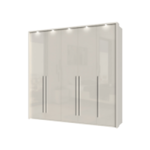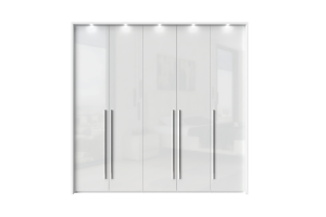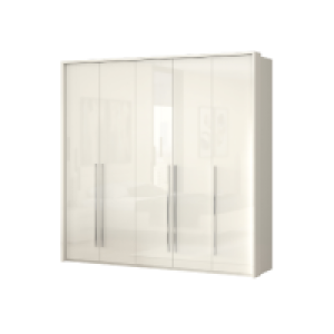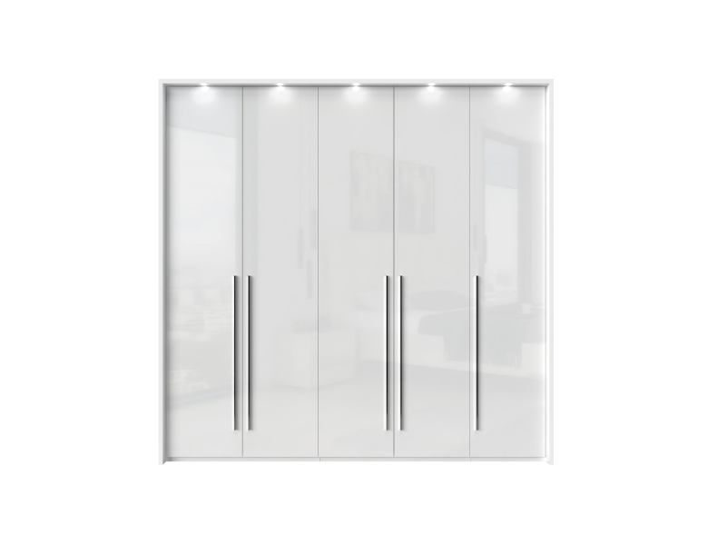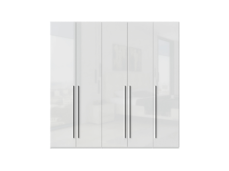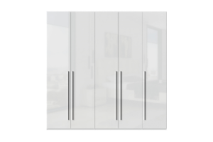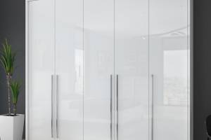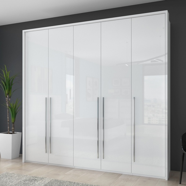 Dulap cu 5 usi cu balamale PIANO WHITE 227x224x56cm alb lucios, maner crom