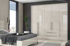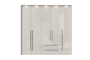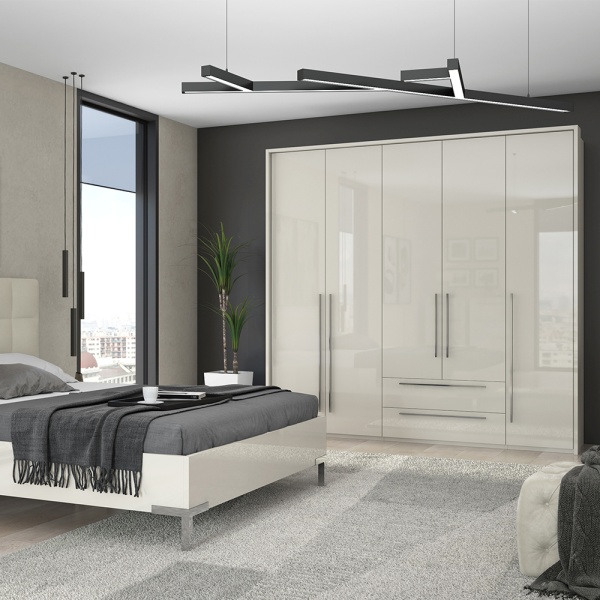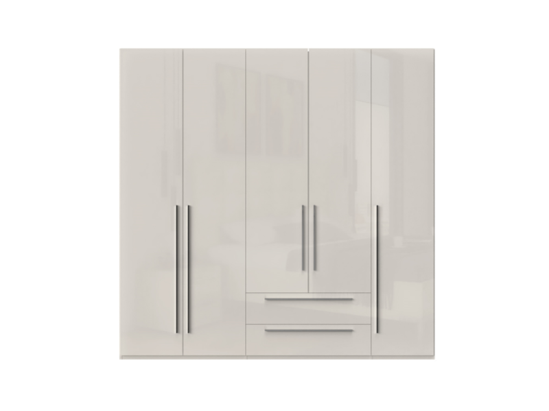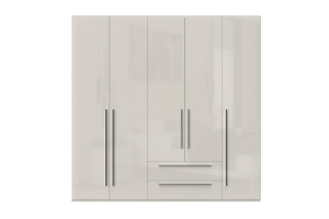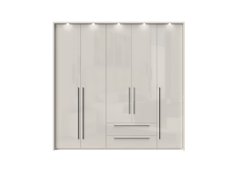 Dulap cu 5 usi cu balamale si 2 sertare PIANO BEIGE 227x224x56cm bej lucios, manere crom