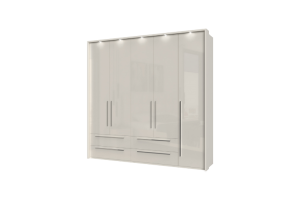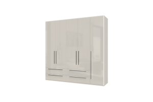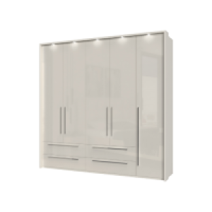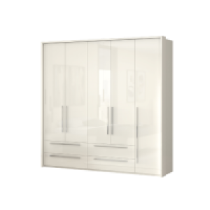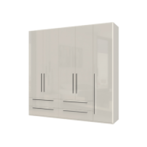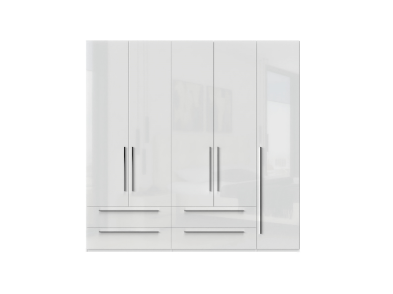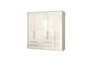 Dulap cu 5 usi cu balamale si 4 sertare PIANO WHITE 227x224x56cm alb lucios, maner crom