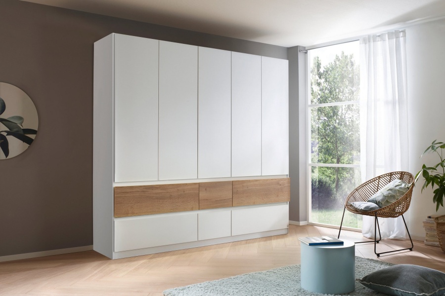 Dulap cu 5 usi cu balamale si 6 sertare WINNIPEG 226x210x56cm alb alpin/ halifax
