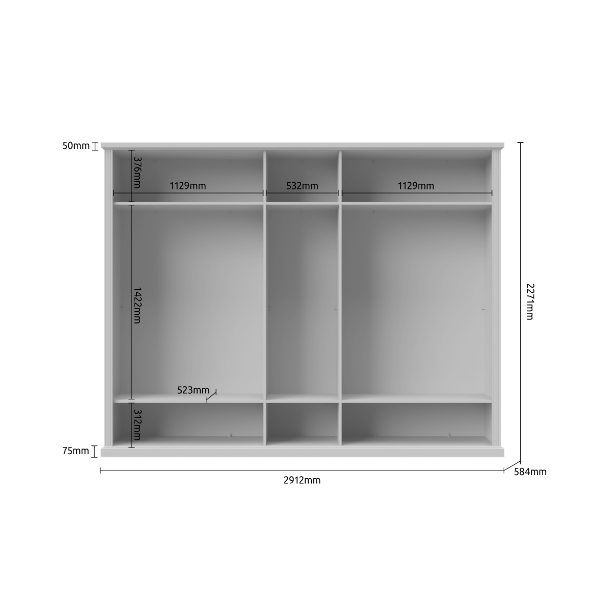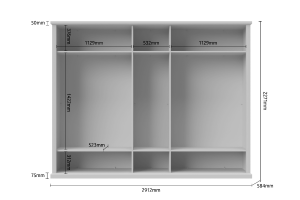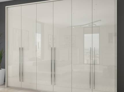 - interiorul dulapului este decorat cu lemn de nuc din Pacific și toate laturile vizibile sunt lăcuite cu lac UV cu un efect moale mat, nuanta alb