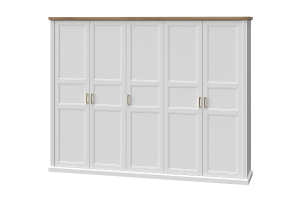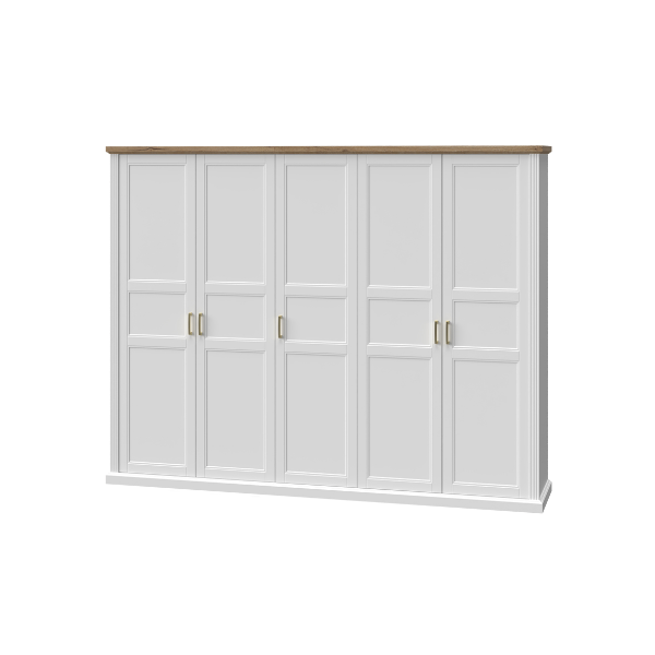 Dulap cu 5 usi cu balamale TARA WHITE 291x227x59cm alb/ nuc Pacific