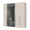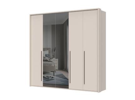 Dulap cu 5 usi cu usi balamale OPERA 227x224x56cm casmir/ oglinda, manere maro