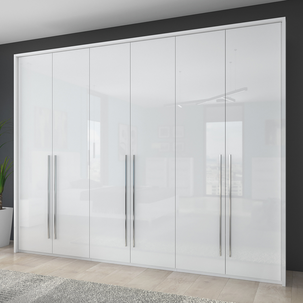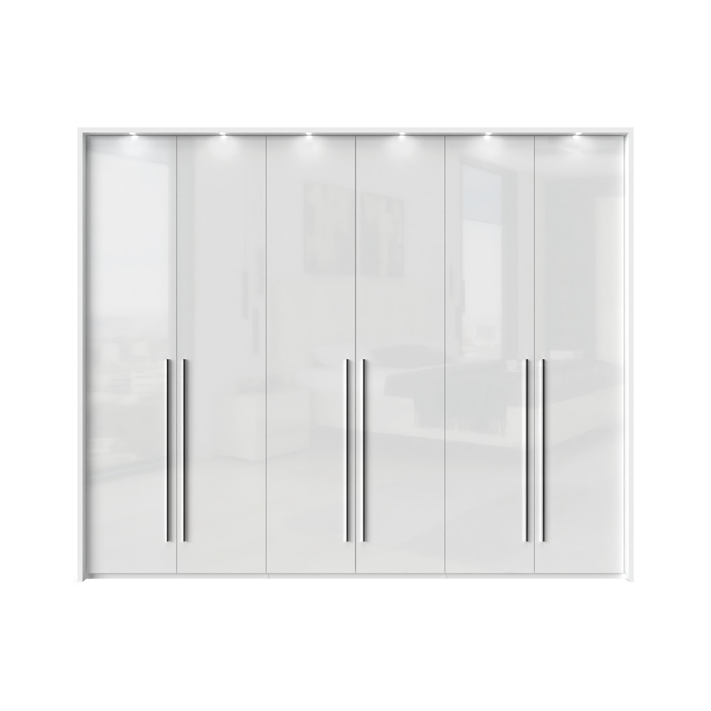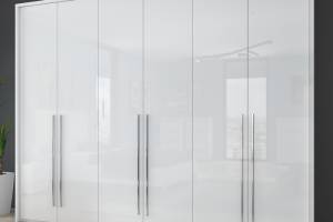 Dulap cu 6 usi cu balamale PIANO WHITE 272x224x56cm alb lucios, maner crom