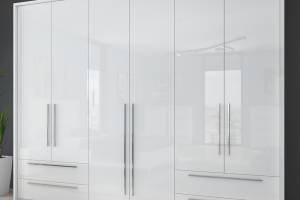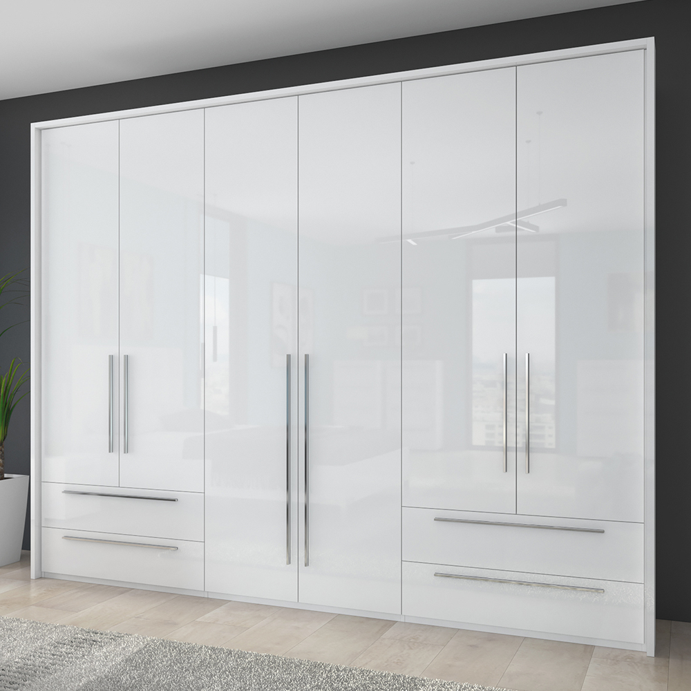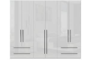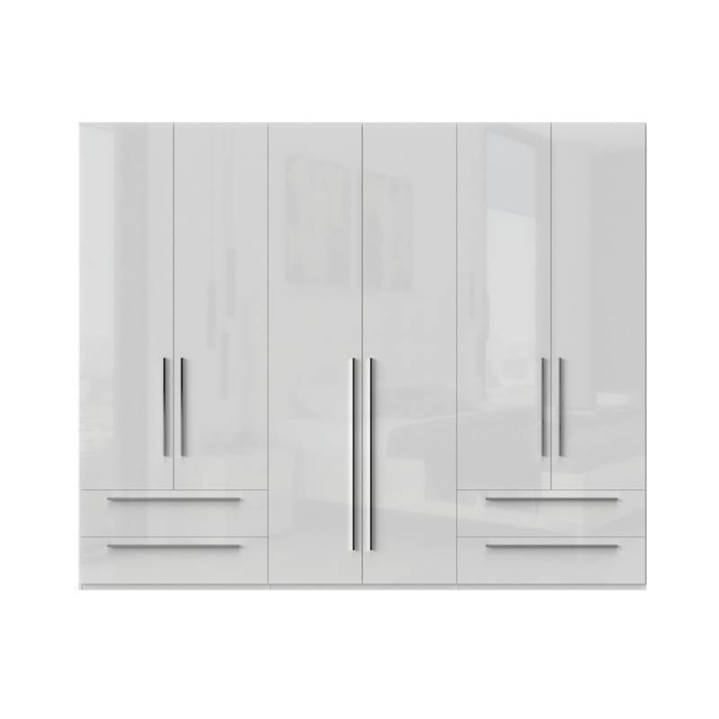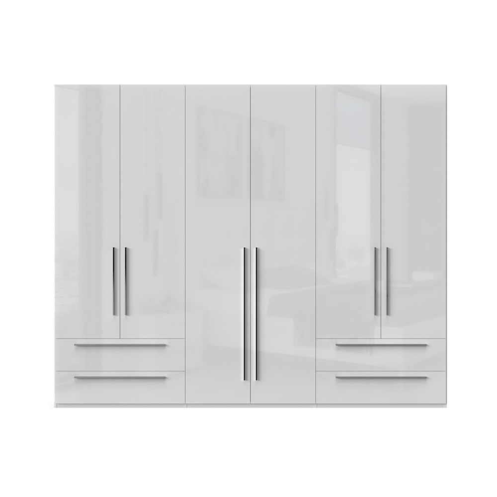 Dulap cu 6 usi cu balamale si 4 sertare PIANO WHITE 272x224x56cm alb lucios, maner crom