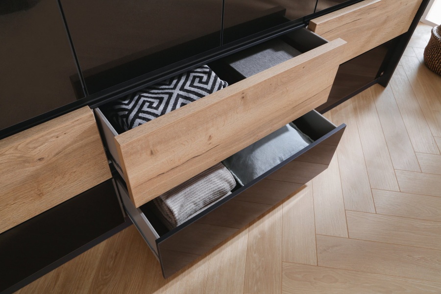 Dulapul vă pune la dispoziție un spațiu generos pentru depozitarea articolelor vestimentare, păstrându-le organizate și mereu la îndemână în dormitor.