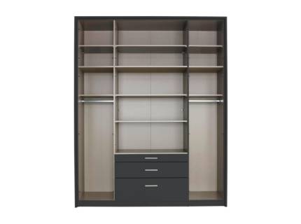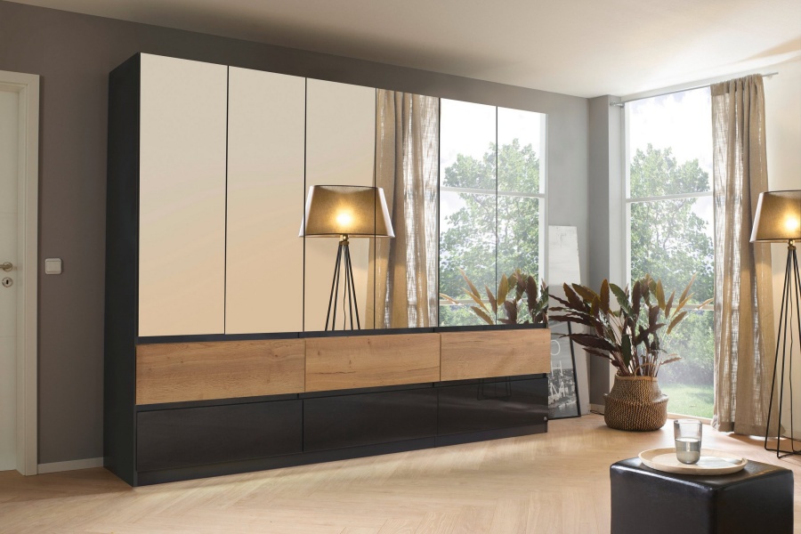 Dulap cu 6 usi cu balamale si 6 sertare WINNIPEG 271x210x56cm gri metalic/ gri lucios - halifax - oglinda