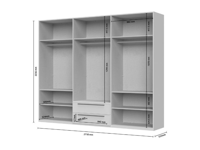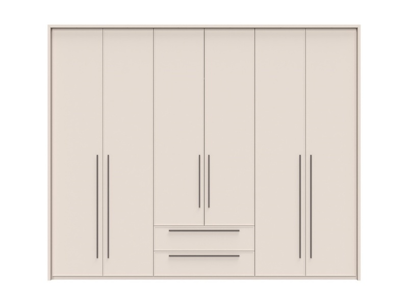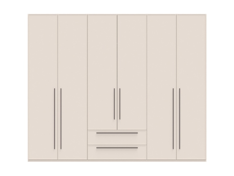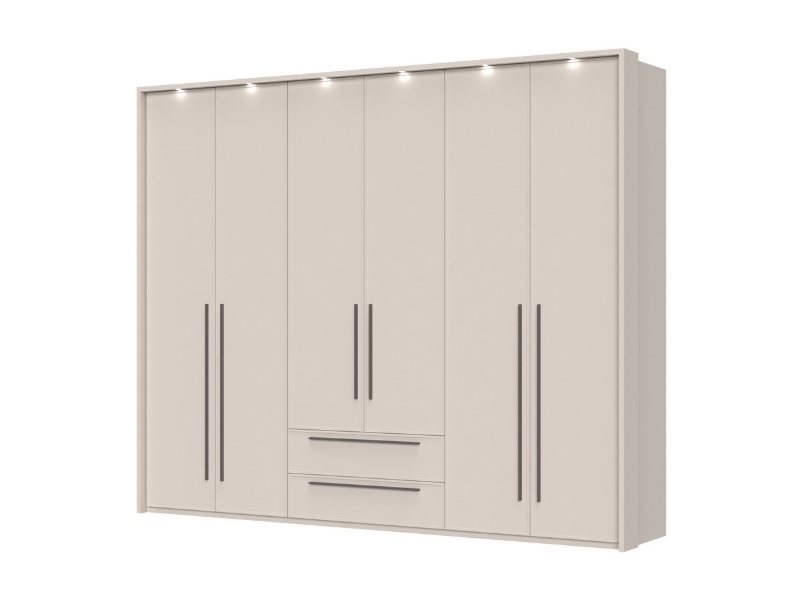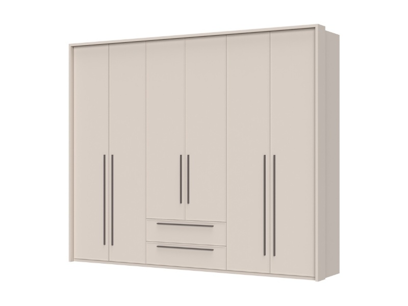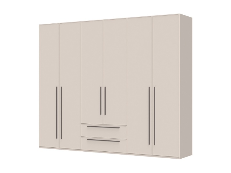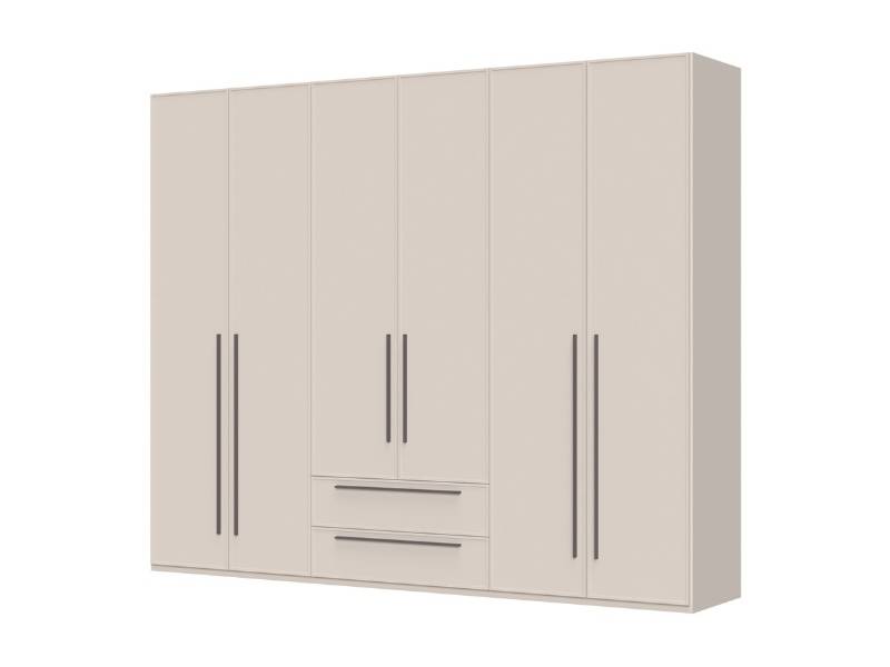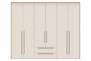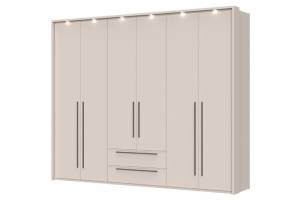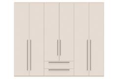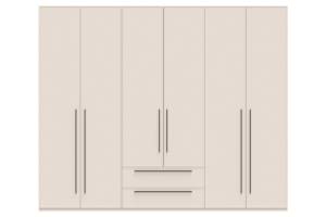 Dulap cu 6 usi cu usi balamale si 2 sertare OPERA 272x224x56cm casmir, manere maro